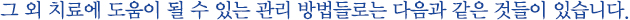 - - 처방받은 국소 피부약을 의사의 지시대로 병변 부위에 잘 바르기